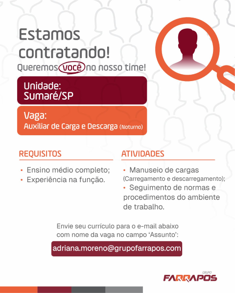 Auxiliar de Carga e Descarga - Sumaré/SP