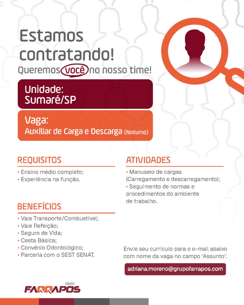 Auxiliar de Carga e Descarga Noturno - Sumaré/SP