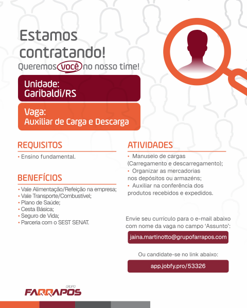 Auxiliar de Carga e Descarga - Garibaldi/RS